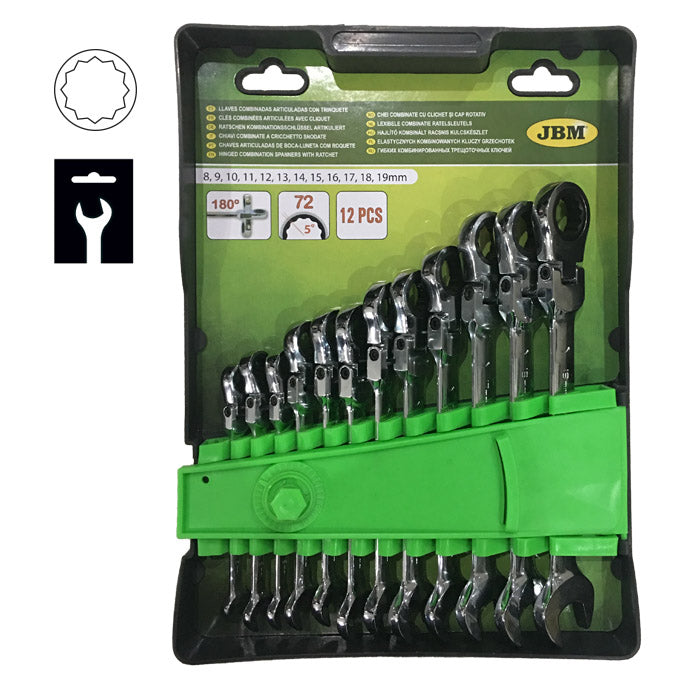 JOGO DE 12 CHAVES ARTICULADAS DE BOCA-LUNETA COM ROQUETE JBM 51318