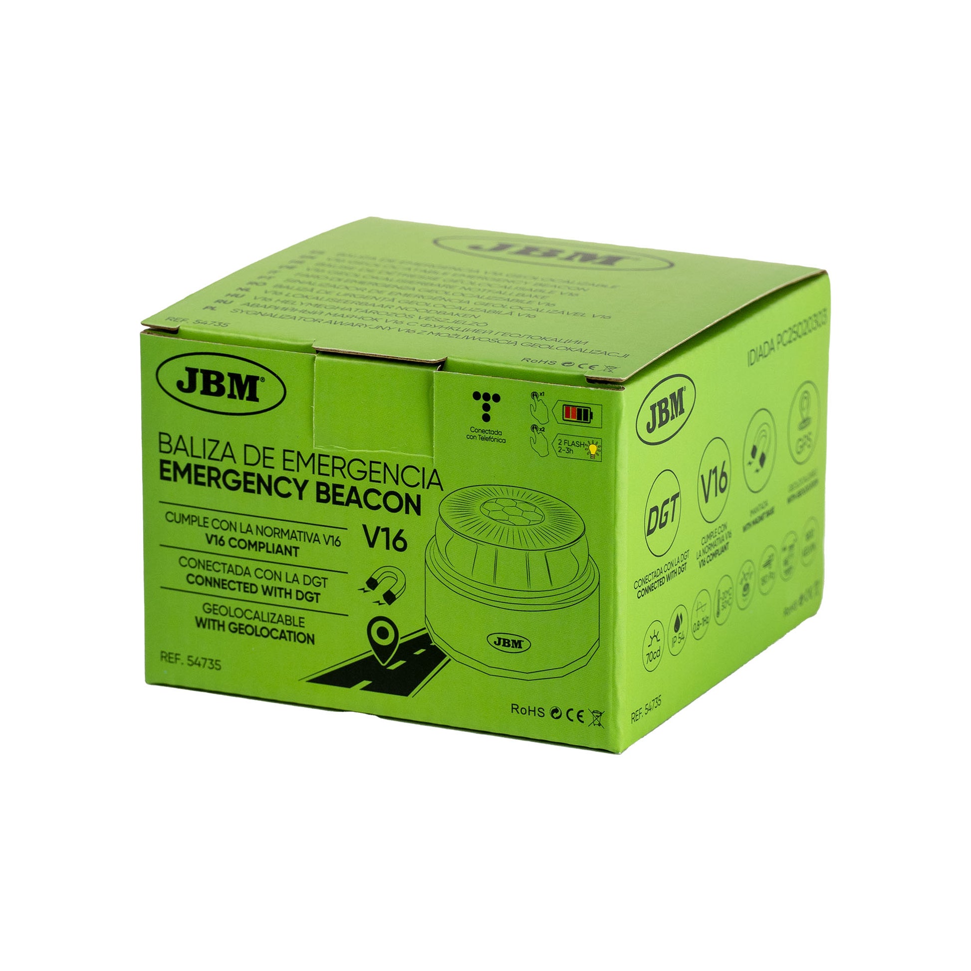 A principal inovação do JBM 53745 é a sua capacidade geolocalizável. Após a ativação, o dispositivo envia automaticamente as coordenadas da sua localização às autoridades competentes (DGT em Espanha), garantindo que os serviços de emergência e os outros condutores são alertados sobre o perigo na estrada em tempo real.